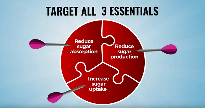 TARGETS ALL 3 ESSENTIALS FOR NORMAL BLOOD SUGAR.